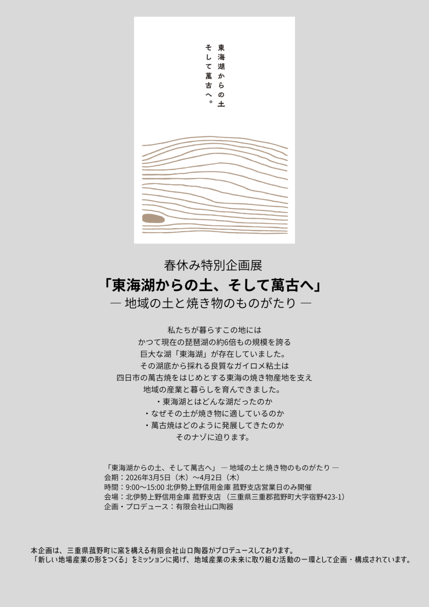 春休み展示企画「東海湖からの土、そして萬古へ」@北伊勢上野信用金庫 4/2㈭まで